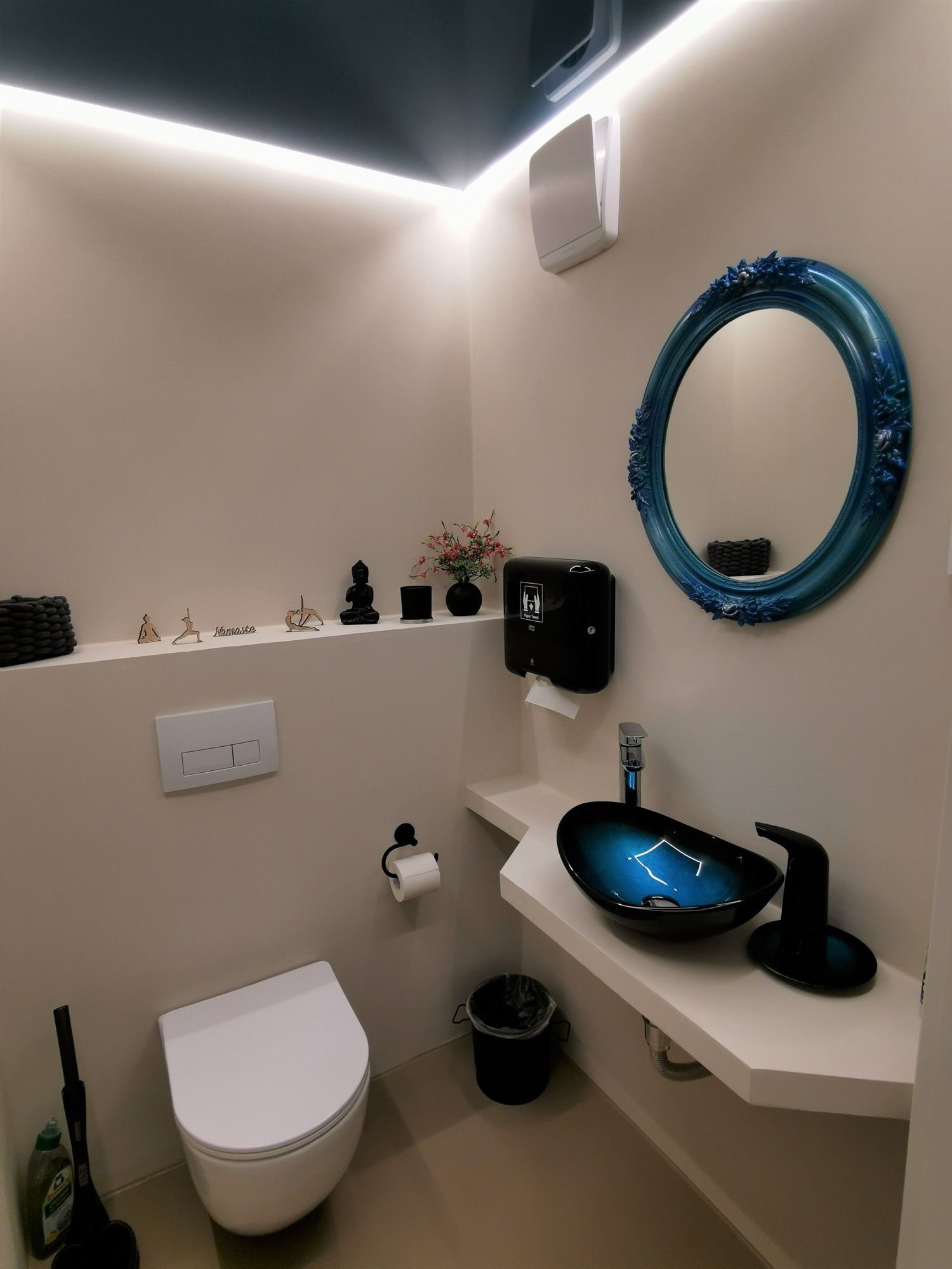 Wir haben an unseren 80 qm großen Yogaraum eine Küche angeschlossen, die es auch ermöglicht, Retreats stattfinden zu lassen. Eine Toilette gehört natürlich auch dazu... aber sieh einfach selbst!
